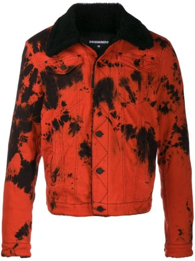 Dsquared2 Faux Shearling Collar Tie Dye Denim Jacket In 972 Red Modesens